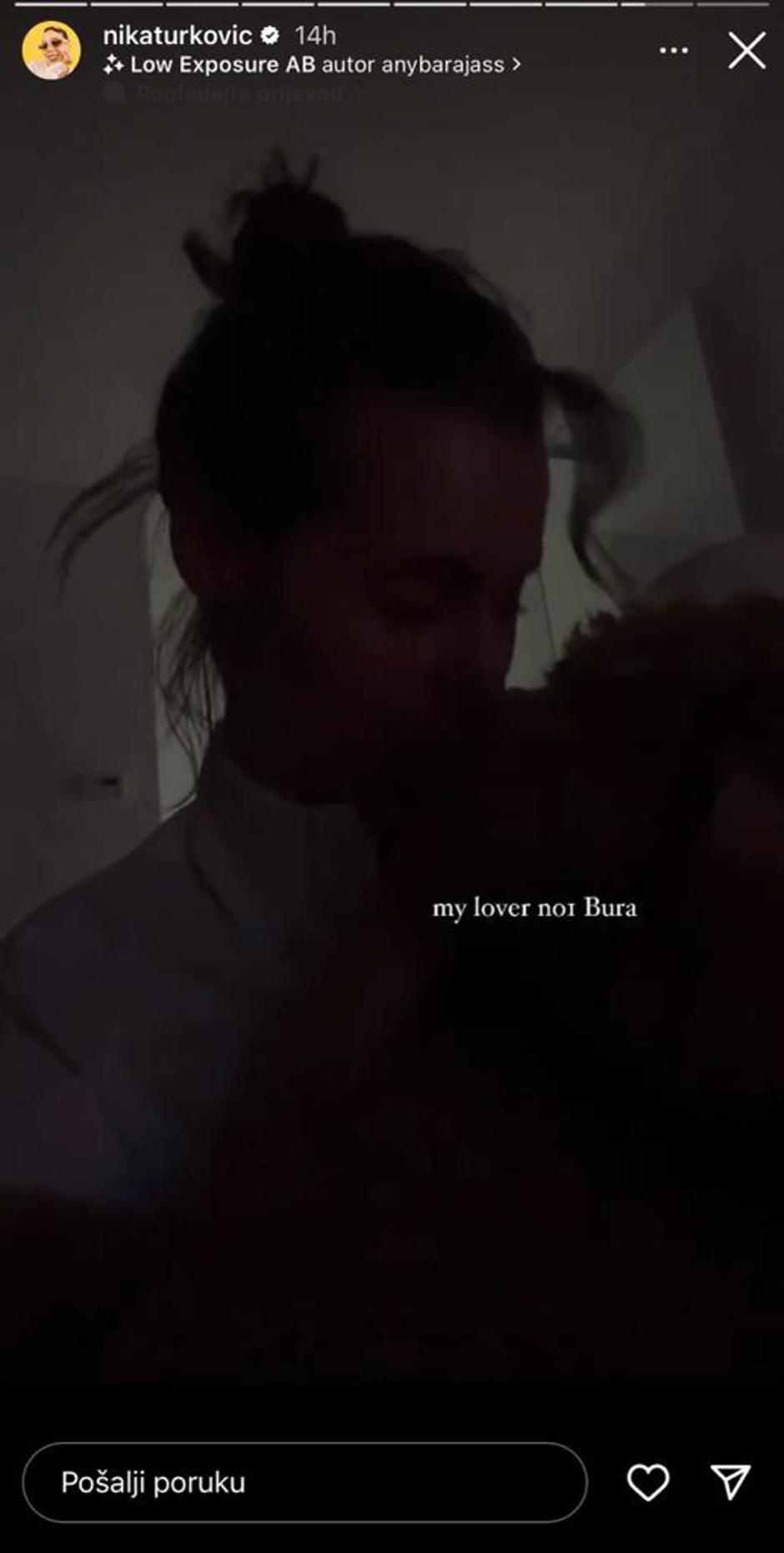 Nika je sinoć na svom Instagram profilu objavila story u zagrljaju s njenim kućnim ljubimcem psićem imena Bura i napisala znakovitu poruku. - Moj ljubavnik broj 1, Bura - napisala je Nika uz snimku koju je podijelila.