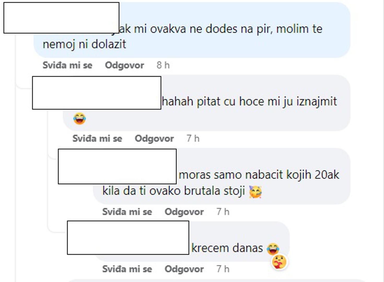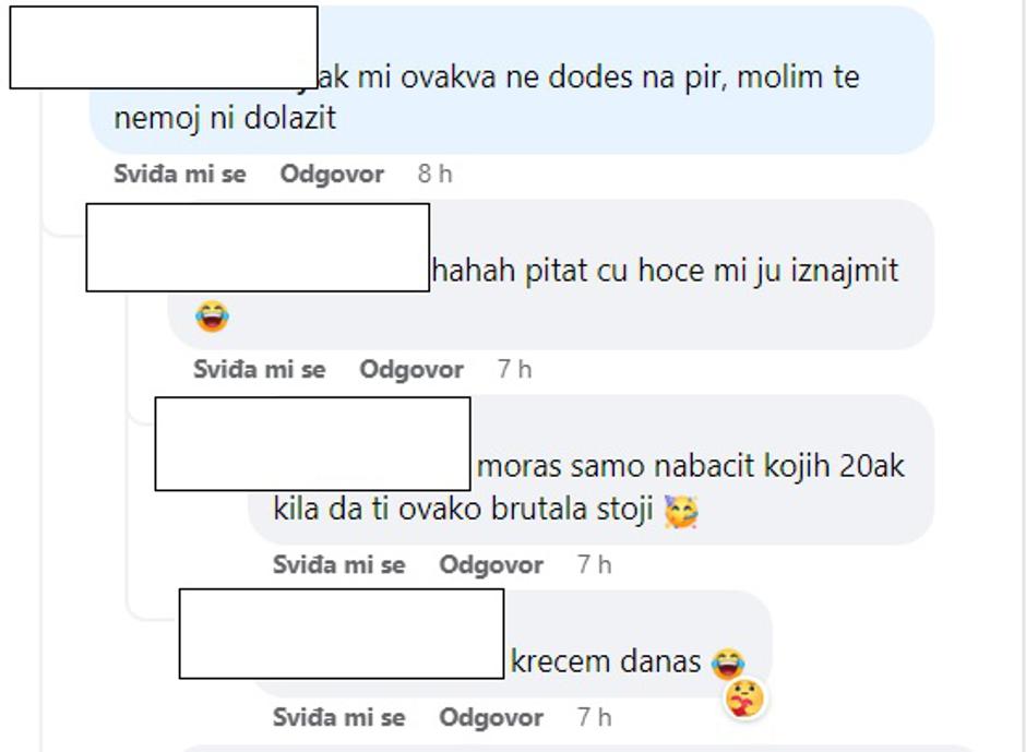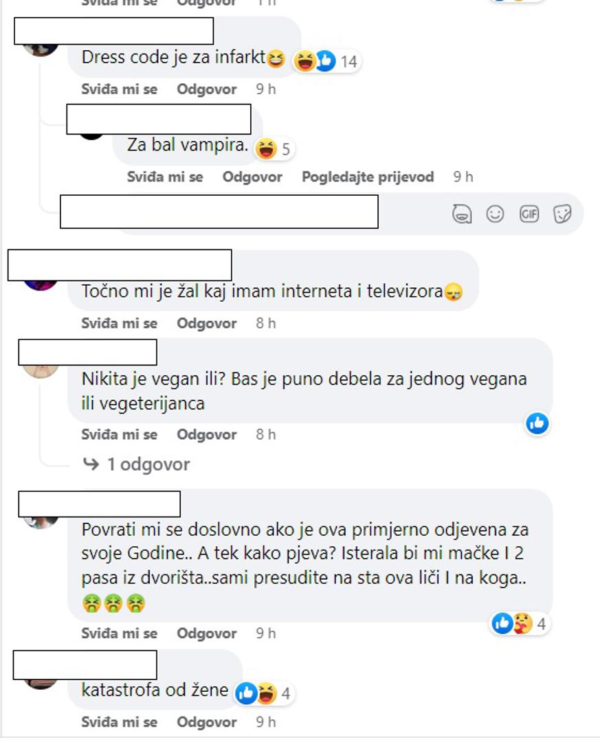 "Dress code je za infarkt", komentirao je jedan od gledatelja, a s njim su se složili mnogi. "Povrati mi se doslovno ako je ova primjerno odjevena za svoje godine. A tek kako pjeva? Istjerala bi mi mačke i 2 pasa iz dvorišta.. Sami prosudite na što ova liči i na koga", dodala je šokirana gledateljica. "Katastrofa od žene", "Silno me zanima gdje nabavlja takvu odjeću?", nizali su se komentari.