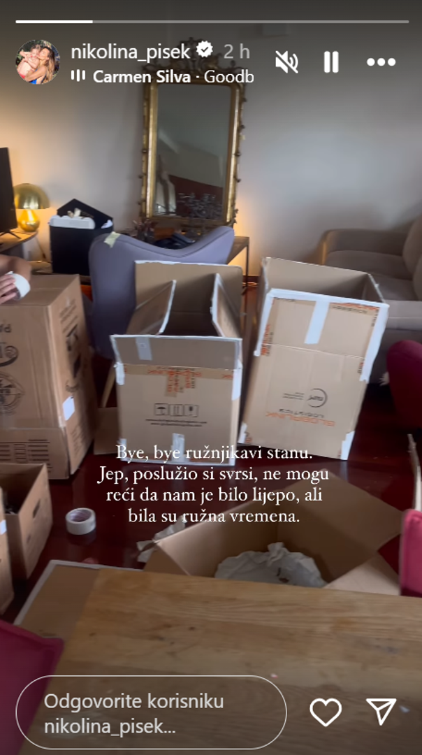"Bye bye ružnjikavi stanu, poslužio si svrsi, ne mogu reći da nam je bilo lijepo, ali bila su ružna vremena", napisala je u opisu. U storyju se vidi mnoštvo kutija punih odjeće i drugih stvari.