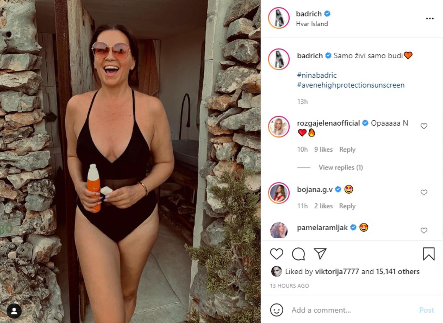Pjevačica Nina Badrić (49) i ovo ljeto provodi u svom stanu u Jelsi na Hvaru, a na Instagramu je objavila fotografiju na kojoj je pokazala kako uživa u crnom kupaćem kostimu.