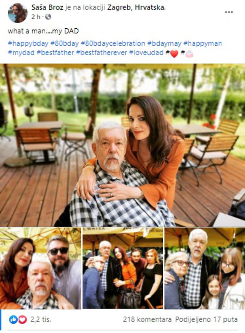 - Kakav čovjek! Moj tata, napisala je Saša pokraj fotografija, na kojima su osim nje i njena mama Mira, brat Andrej, te Mišini unuci. Objava je u samo dva sata dobila više od 2000 lajkova, i puno oduševljenih komentara Sašinih pratitelja, koji odavno nisu vidjeli njenog tatu.
