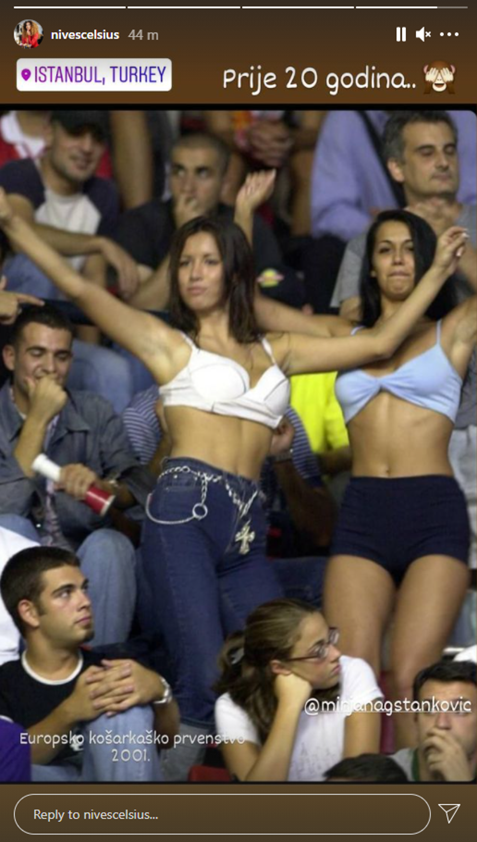 Spisateljica i pjevačica Nives Celzijus (39) na svojem je Instagram Storyju podijelila je fotografiju staru 20 godina. Istaknula je da je fotografija snimljena u Istanbulu na Europskom košarkaškom prvenstvu 2001. godine. Nives je bila obučena u traperice i bijeli kratki top, a bila je i navijački raspoložena.