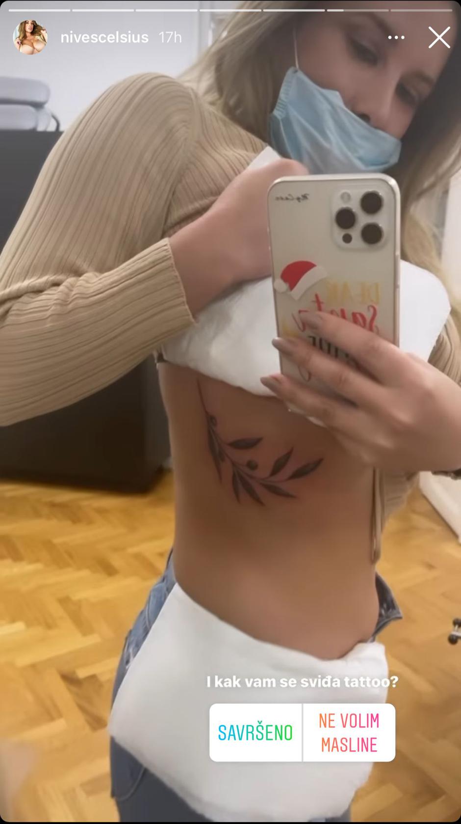 Snimila je video u ogledalu na kojem je vidljivo kako je istetovirala maslinovu grančicu koja je inače simbol mira, a pratitelje je u anketi upitala kako im se sviđa novi detalj na njezinom tijelu.