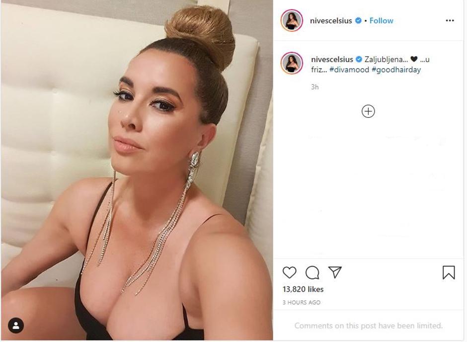 Pjevačica i spisateljica Nives Celzijus ponovno je oduševila fanove fotkom na Instagramu. Nives je ovaj put pokazala novu frizuru koju ne viđamo često na njoj. Kosu je svezala u visoku punđu, a njezin dekolte opet je bio u prvom planu.