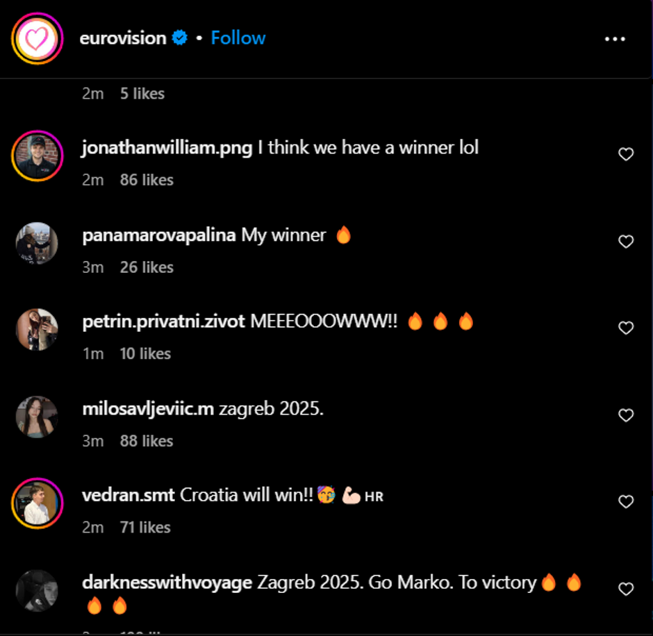 Koliko ga publika obožava 🔥☄️👏🏼 nema šta da se komentariše, ovo je najjači entry Hrvatske ako uzmemo u obzir i kotiranje i reakcije, plus priča da nije prvo prošao na Doru 🫂#Croatia #Eurovision