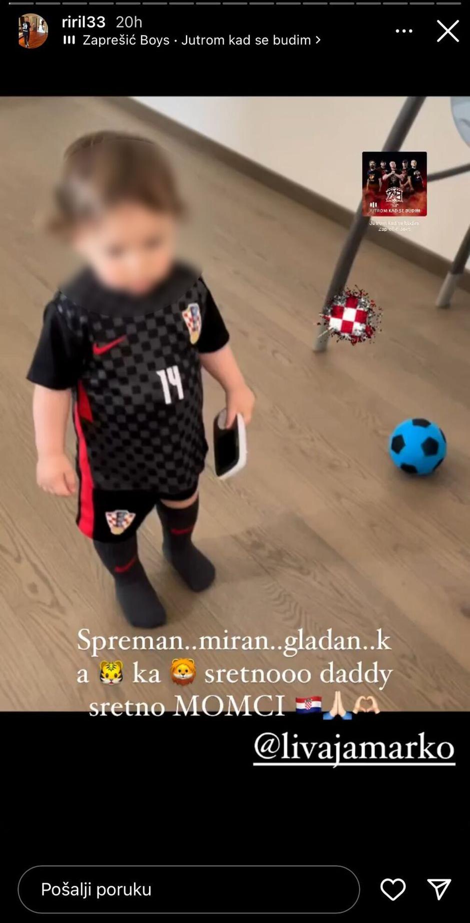 Inače, Iris je supruga podržala i uoči prve utakmice kada nije bio među prvih 11 igrača, no ušao je s klupe. Tada je na svom Instagram profilu podijelila fotografiju sinčića koji je pred televizorom u obiteljskom domu čekao da vidi tatu.
