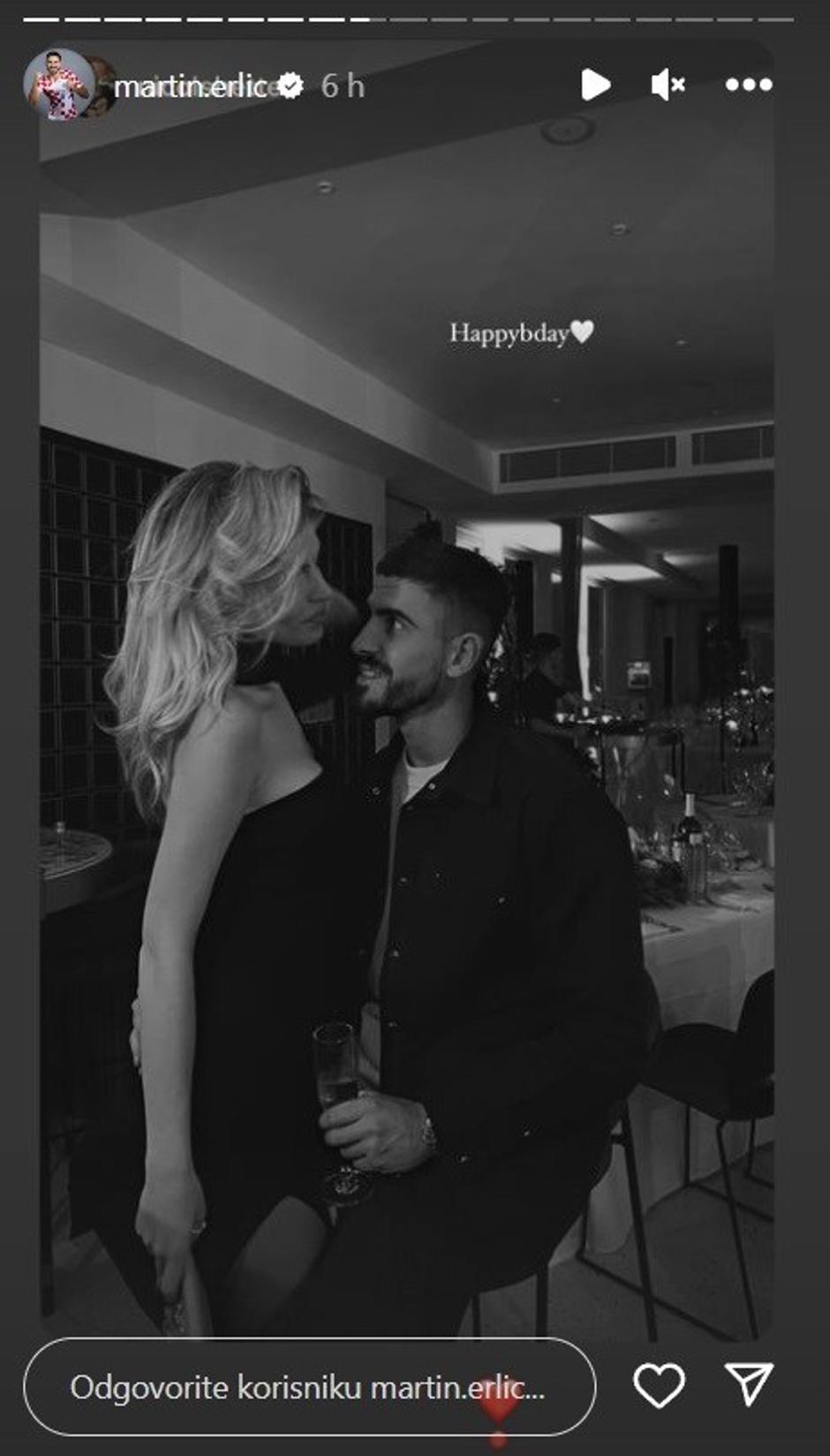 Mladi hrvatski reprezentativac Martin Erlić danas je proslavio 26. rođendan, a tijekom proslave otkrio je i jednu informaciju koja već dugo zanima javnost. Naime, mladi Martin mnogim je damama zapeo za oko, a on dugo nije govorio o svom statusu veze. Sada je dao naslutiti da je njegovo srce zauzeto i to jednom fotografijom. Naime, čini se kako je Martin u vezi sa Zadrankom Nikolinom Perković. Na svojem Instagram Storyju Erlić je podijelio fotografiju na kojoj su njih dvoje pozirali zagrljeni, a uz Nikolininu objavu dodao je emotikon srca. Ona mu je ovom objavom čestitala rođendan.