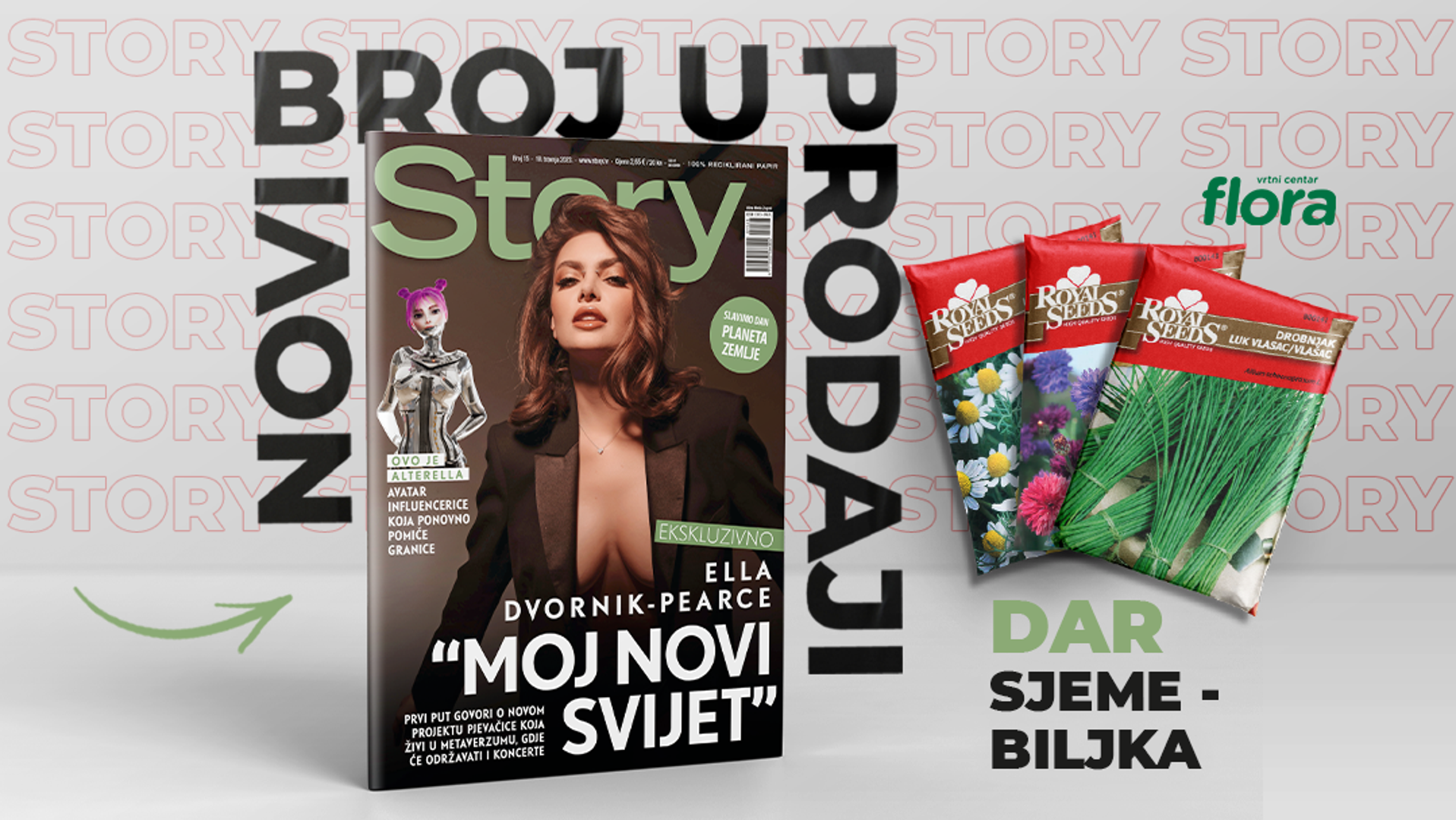Ususret nadolazećem Danu planeta Zemlje koji se obilježava 22. travnja magazin Story tradicionalno izlazi u zelenom ruhu – donoseći pregršt sadžaja na 100% recikliranom papiru. Tim povodom Story DARUJE SVIM ČITATELJIMA – sjeme za biljke! Odaberite između sjemena cvijeća, začina ili povrća uz Story koji vas čeka na kioscima od srijede, 19. travnja! Zazelenite svoj balkon ili dvorište, posijte sjeme i uživajte gledajući kako vaša biljka napreduje i daje plodove.