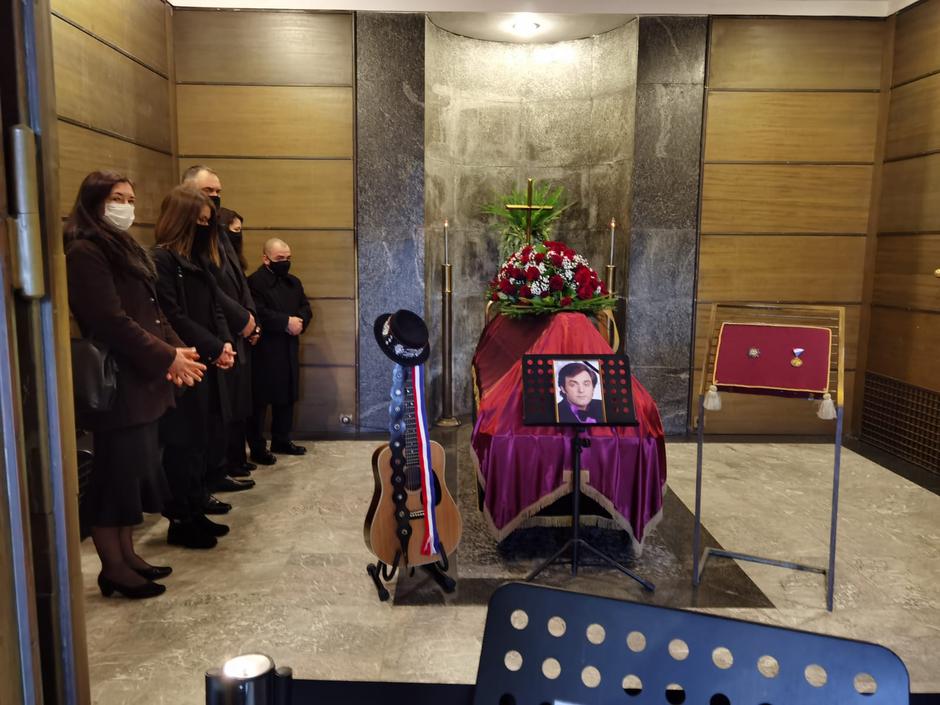 Plakale su plavuše i divne crne žene, a zaridale su čak i tambure izvodeći na rastanku omiljene mu pjesme. Pred odrom Krematorija stajao je njegov bećarski šešir i gitara od koje se nije odvajao pa se na trenutak učinilo kao da je i on tamo. Među okupljenima bili su i Nina Badrić, Jacques Houdek, Zdenka Kovačićek, Jasna Zlokić...
