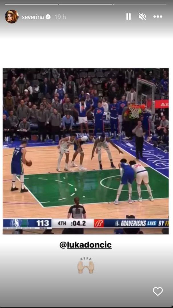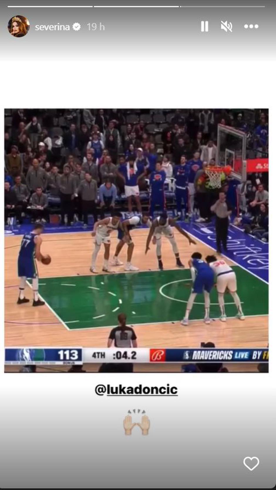 Luka Dončić (28) slovenski je profesionalni košarkaš koji trenutačno nastupa za Dallas Maverickse. U srijedu je odigrao jednu od najimpresivnijih utakmica u karijeri i to protiv New York Knicksa, a tim mu je povodom čestitala i Severina. Oduševljena pjevačica podijelila je s pratiteljima kako gleda utakmicu, a u Instagram Storyju označila je Dončića i ostavila emotikon pljeska. Prije njega podijelila je i članak posvećen njemu.