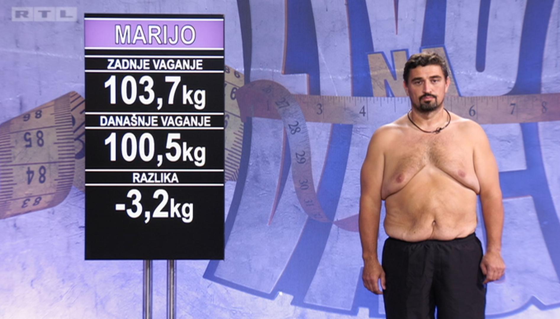 Marijo Barišić policajac je iz Osijeka koji je u show ušao s 159,8 kg. Toliko je vaga pokazala na prvom vaganju, a na posljednjem vaganju u emisiji u petak imao je 100,5 kg. Ukupno je skinuo u showu 59,3 kg.