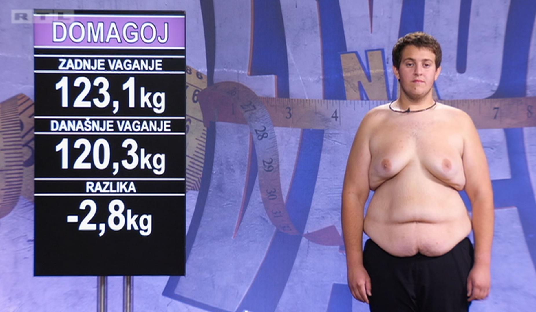 Domagoj Santo je 18-godišnjak iz Kloštara Podravskog i u prvom vaganju u emisiji imao je 173, kg. U show je došao jer jednostavno sam nije mogao skinuti višak kilograma. U zadnjem vaganju je imao 120,3 kilograma i ukupno je u showu izgubio 53,3 kilograma.