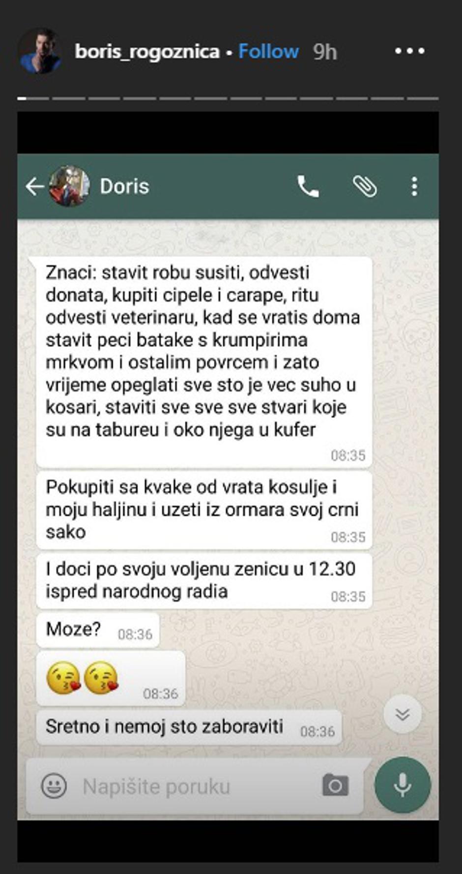 No, ono što je sada zaintrigiralo javnost jest screenshot poruka koje je Doris poslala Borisu na Valentinovo prošle godine, a koje je Boris prethodno sam objavio na svom Instagram profilu, koji je odnedavno zaključan za javnost. Boris je tada njima nasmijao pratitelje.