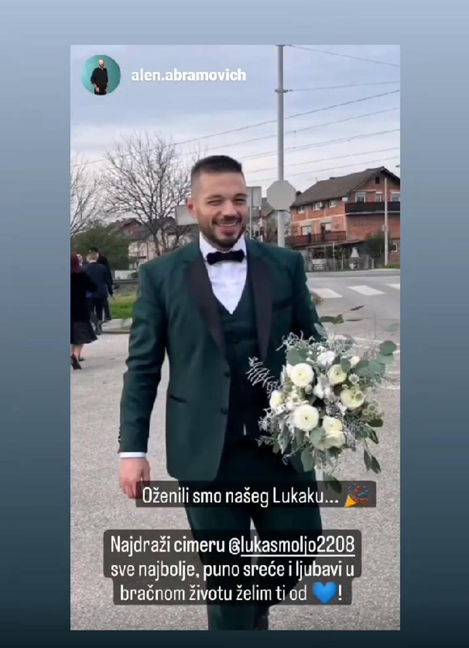 "Najdraži cimeru, želim ti sve najbolje, puno sreće i ljubavi u bračnom životu želim ti od srca", napisao je Alen u objavi na Insta Storyju.