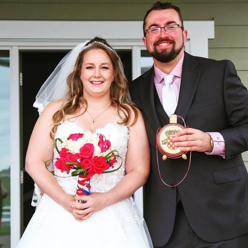 Ceremonija se održala u Lethbridgeu u Kanadi, gdje par živi. Antonija je, za razliku od vjenčanja kod matičara, ovaj put imala raskošnu vjenčanicu izvezenu s perlicama s puno slojeva tila i čipkom, a na glavi je imala vjenčić ukrašen kristalićima na glavi na kojem je bio prikačen veo.