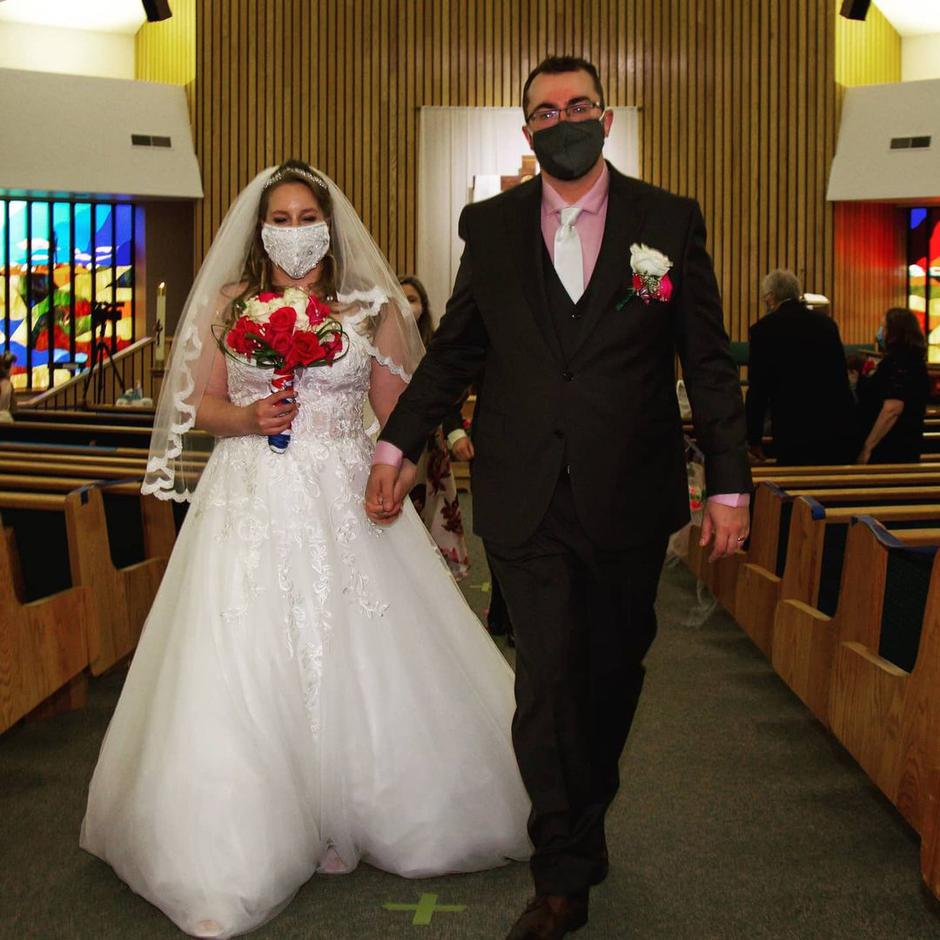 Iako je par napokon uspio održati vjenčanje, u nekim trenucima su ipak morali nosili maske.
