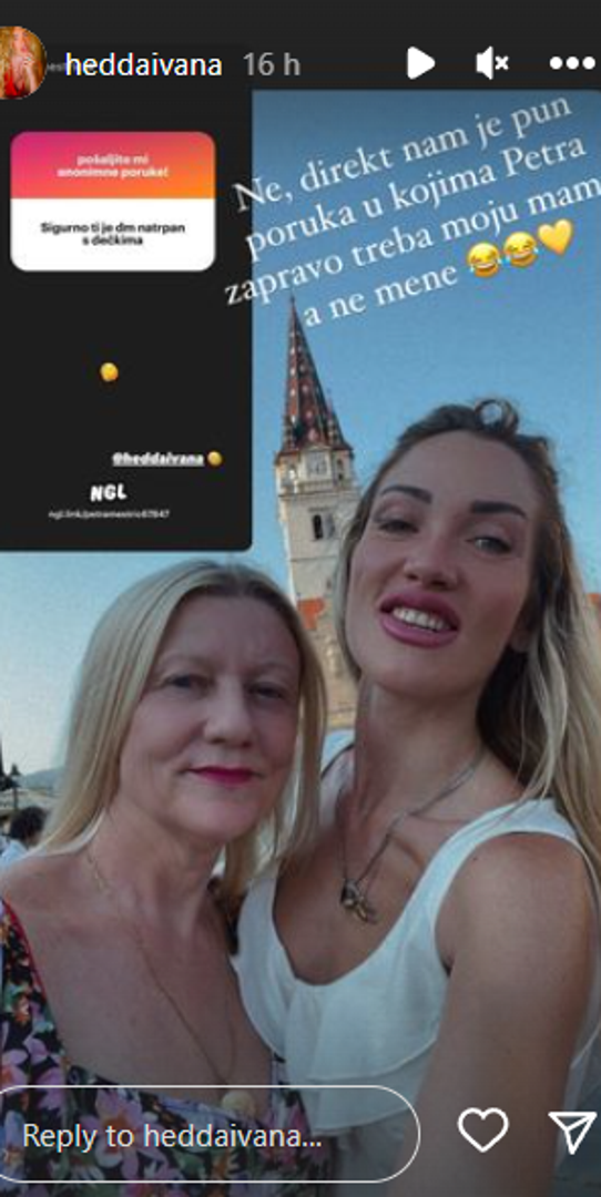 - Ne, poruke su zapravo one u kojima Petra zapravo treba moju mamu, a ne mene - odgovorila je Hedviga uz smijeh te fotografiju s mamom.