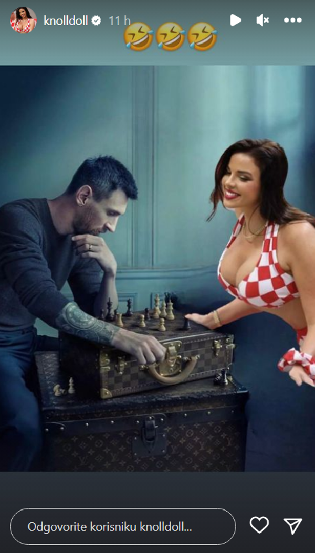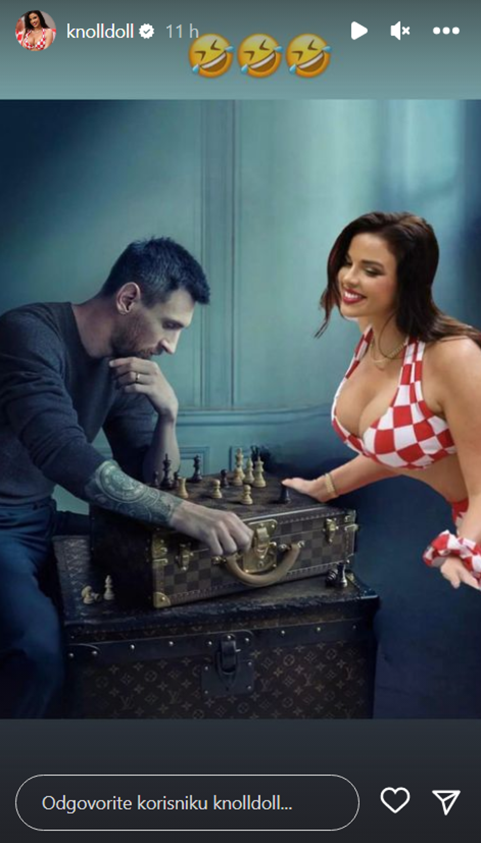 Jedna od njih je šala na popularnu fotografiju na kojoj su Lionel Messi i Christiano Ronaldo igrali šah na kovčegu brenda Louis Vuitton, a za ovu priliku fotografija je malo promijenjena. U ovoj verziji, šah ne igraju Messi i Ronaldo, već Messi i Knoll, a objava je ubrzo postala viralna na Twitteru i Instagramu te je nasmijala i samu Ivanu koja je pored fotografije stavila emotikon koji plače od smijeha.