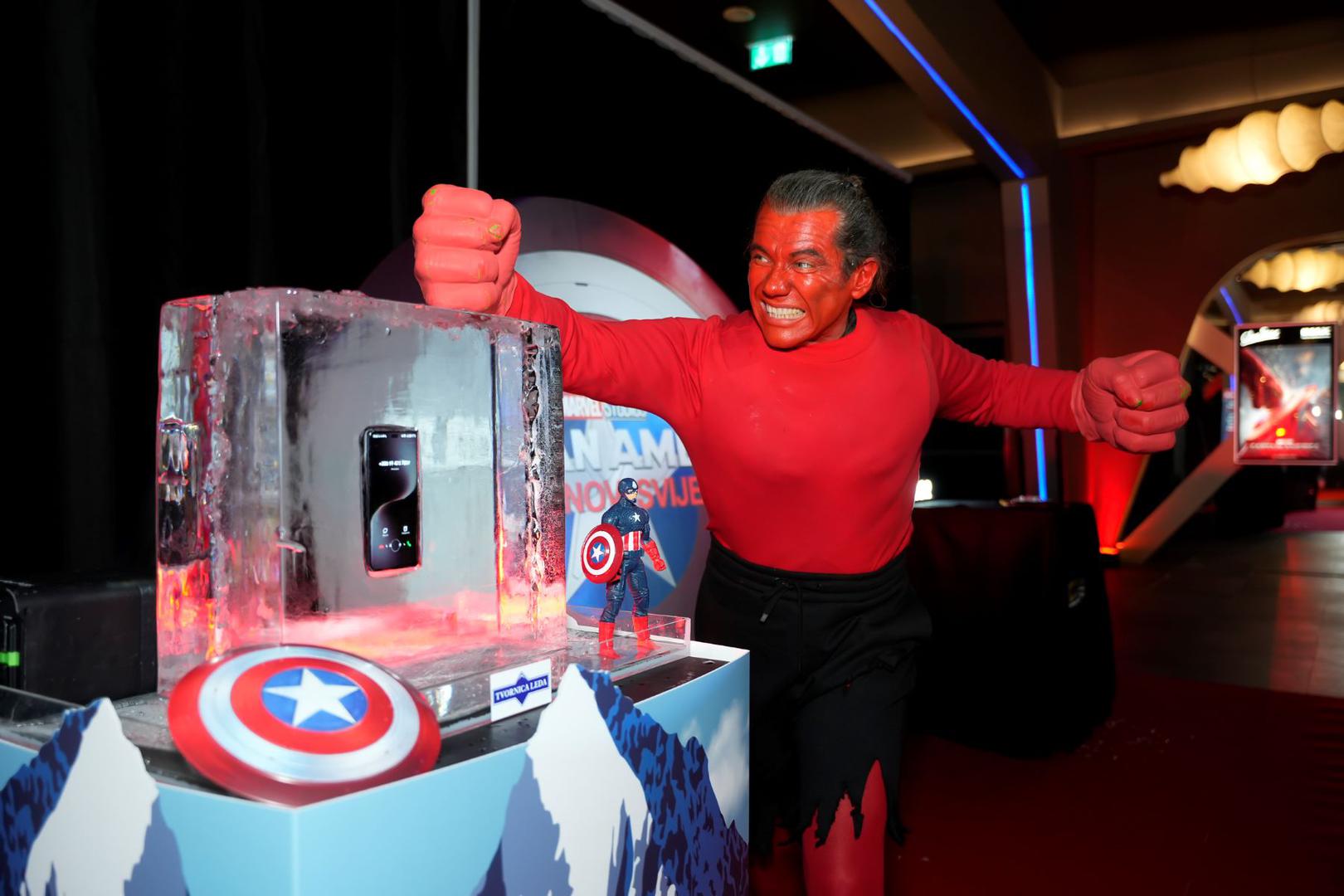 Iako je upravo premijera novog Kapetana Amerike bila glavna zvijezda večeri, na iznenađenje posjetitelja pojavila se i neobična atrakcija – HONOR Magic7 Lite zarobljen u velikom komadu leda! U stilu pravih superjunaka, ovaj tehnološki performans pokazao je izdržljivost i nesalomljivost novog Honorova pametnog telefona, dok su uzvanici s oduševljenjem pratili „ledolomni“ spektakl.