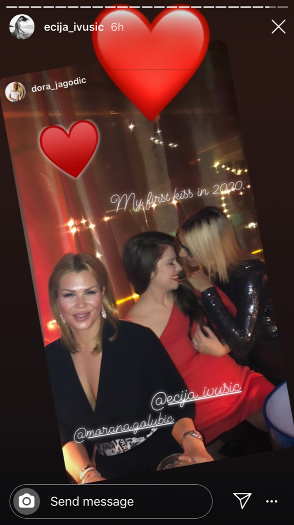 Sa svojim pratiteljima na Instagramu je podijelila da je prvu poljubila svoju najbolju prijateljicu Moranu Golubić, te se odlično zabavljala.