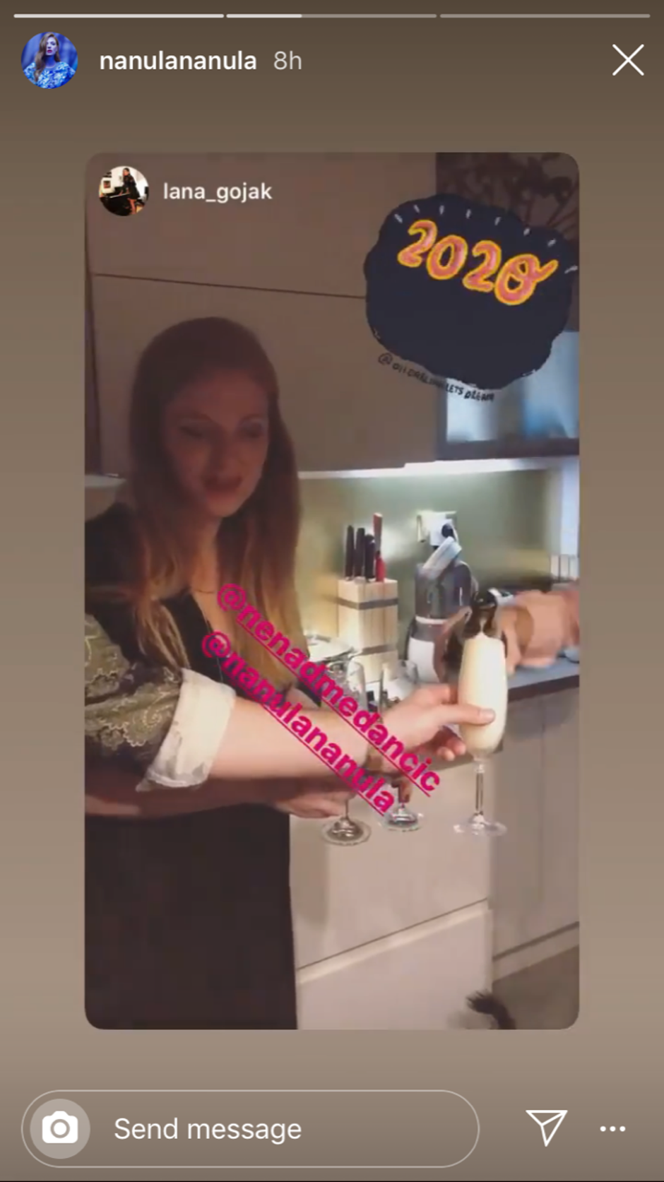 Brojni su Novu proslavili u krugu obitelji, a ako su odlučili izaći, nisu to željeli podijeliti s javnosti jer dokaza na društvenim mrežama nema, štoviše, neki čak nisu objavljivali ni masovne čestitke svojim obožavateljima i brojnim pratiteljima. Dok su fanovi glumicu Natašu Janjić mogli vidjeti na HRT-ovom Milijunašu, kako za humanitarne svrhe osvaja 125 tisuća kuna ona je na Instagramu objavljivala fotografije kućnog tuluma s kolegicom i prijateljicom Lanom Gojak.