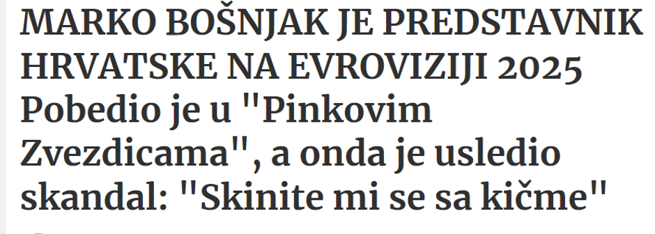 Srpski mediji ovih su dana posvetili veliku pozornost Dori 2025, hrvatskom izboru za Euroviziju, donoseći izvještaje o najvažnijim zbivanjima, ali i dramatičnim trenucima koji su obilježili natjecanje. Najveća vijest svakako je pobjeda Marka Bošnjaka koji će predstavljati Hrvatsku na Euroviziji 2025. Srpski portali ističu kako je Bošnjak već bio poznat publici u regiji kao pobjednik "Pinkovih zvjezdica", no naglašavaju i kontroverzije koje su uslijedile nakon njegova trijumfa. Neki naslovi prenose njegovu izjavu "Skinite mi se s kičme", sugerirajući da se pjevač našao pod pritiskom javnosti nakon pobjede.