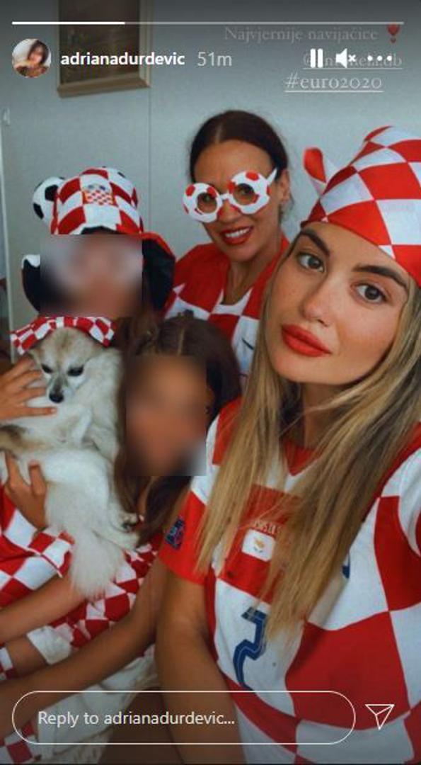Također, trudna supruga Duje Ćalete-Cara, Adriana Đurđević, objavila je na svom Instagram Storyju fotografiju na kojoj je pokazala kako ona za svog Duju navija sa sestrom Antonelom i njezinim kćerima.