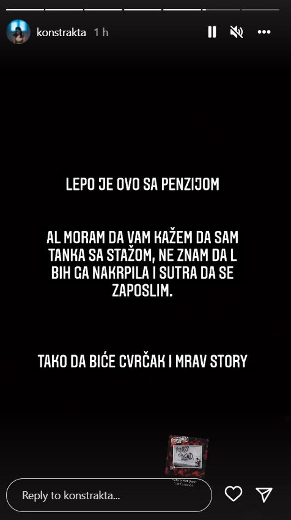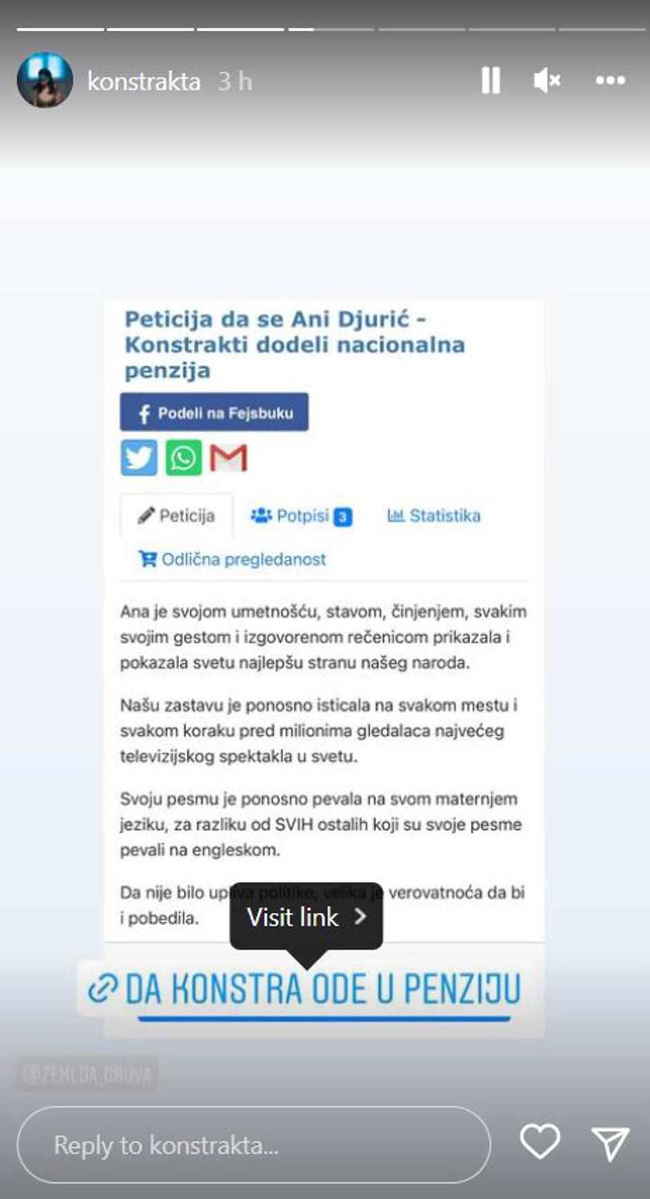 I sama Konstrakta referirala se na peticiju na svom instagram profilu. Podijelila je link peticije i napisala: 'Da Konstra ode u mirovinu'.