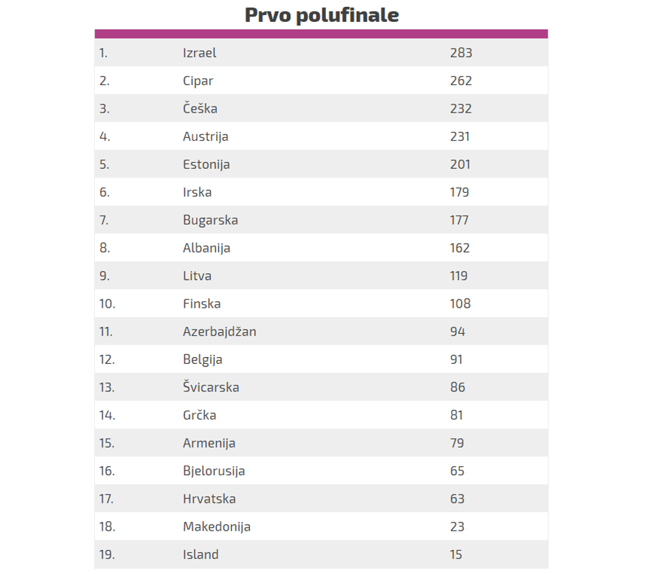 Uvidom u rezultate glasovanja sad se može vidjeti koliko je bila daleko od ulaska u završnu večer. Štoviše, iza naše  predstavnice ostale su tek dvije zemlje – Makedonija i Island.
