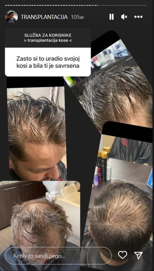 Influencer i natjecatelj u prošloj sezoni "Plesa sa zvijezdama" Sandi Pego na svojem je Instagramu podijelio cijeli postupak transplantacije kose na koji je išao u jednu kliniku u Tursku. Ispričao je kako je skinuo 4300 folikula s mjesta gdje je imao više kose i one su mu  transplantirane na gornji dio glave gdje mu je nedostajalo kose. Kazao je kako cijeli postupak nije bolan te se bol osjeti samo u trenutku primanja anestezije. Istaknuo je kako prvih pet dana nakon zahvata je smio spavati samo na leđima i dobio je posebne upute kako prati kosu i koje preparate koristiti i otkrio je kako je on presađivanje kose platio 2500 eura.