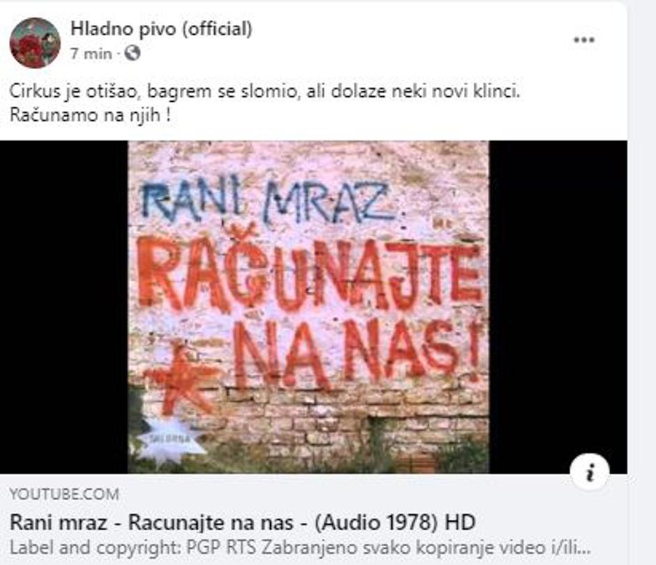 Grupa Hladno pivo podijelili su njegovu pjesmu 'Rani mraz' i napisali: "Cirkus je otišao, bagrem se slomio, ali dolaze neki novi klinci. Računamo na njih !".