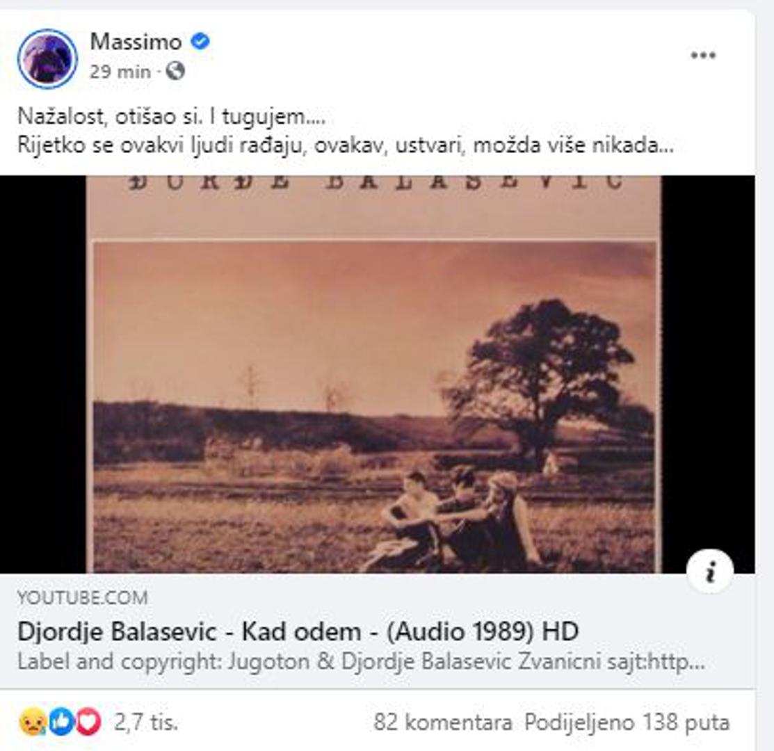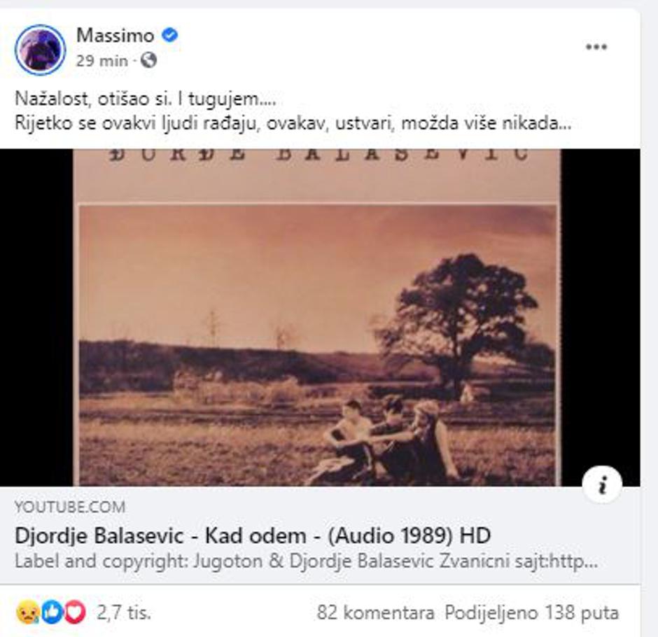 Massimo je također podijelio njegovu pjesmu "Kad odem" i napisao: "Nažalost, otišao si. I tugujem.... Rijetko se ovakvi ljudi rađaju, ovakav, ustvari, možda više nikada...".