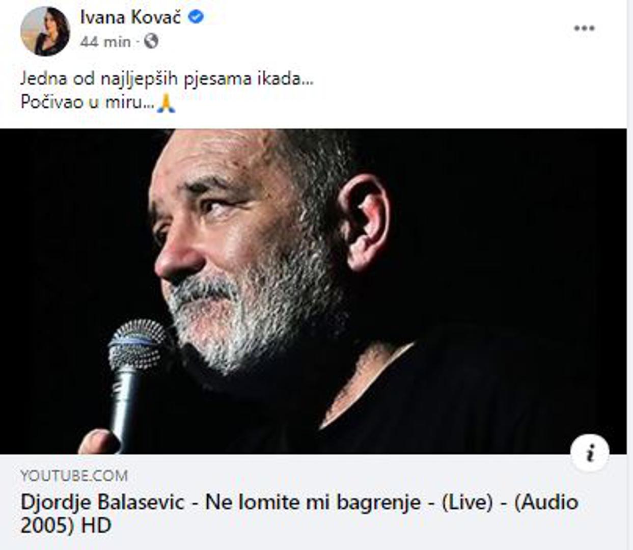 Pjevačica Ivana Kovač podijelila je njoj jednu od najljepših njegovih pjesama: "Ne lomite mi bagrenje".