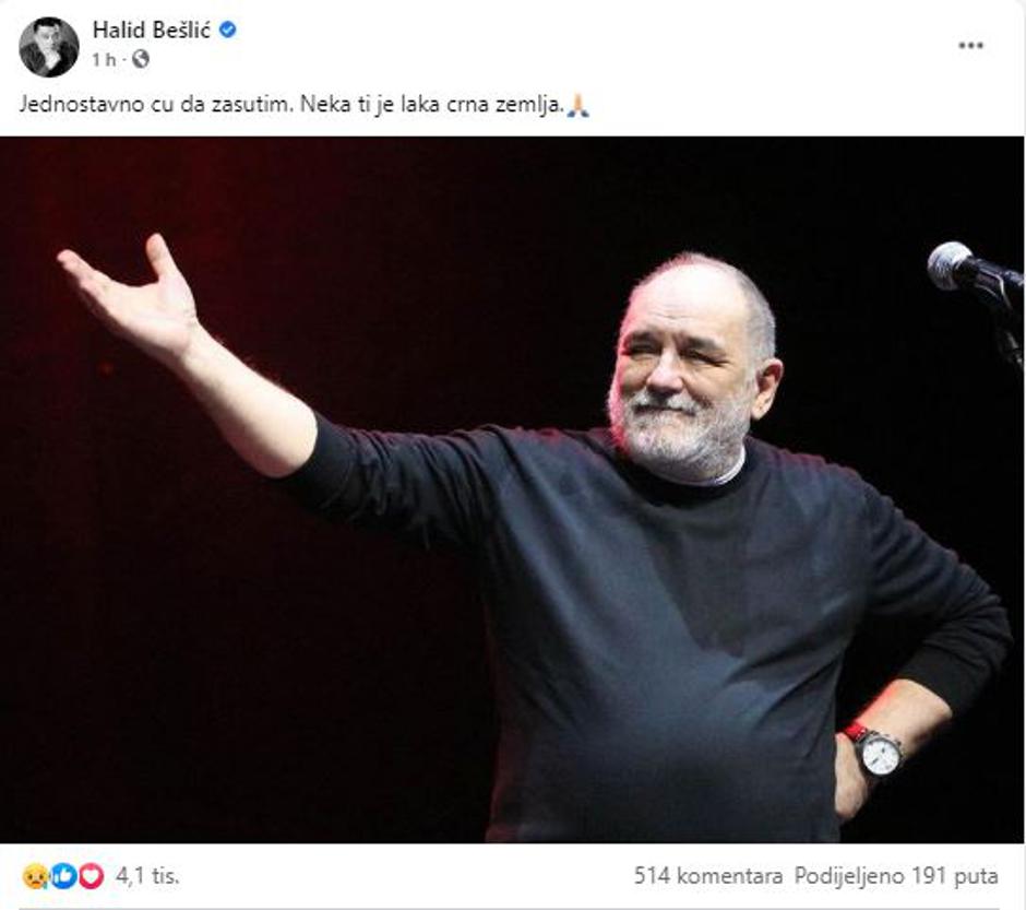 Halid Bešlić od kolege se oprostio riječima: "Jednostavno cu da zasutim. Neka ti je laka crna zemlja."