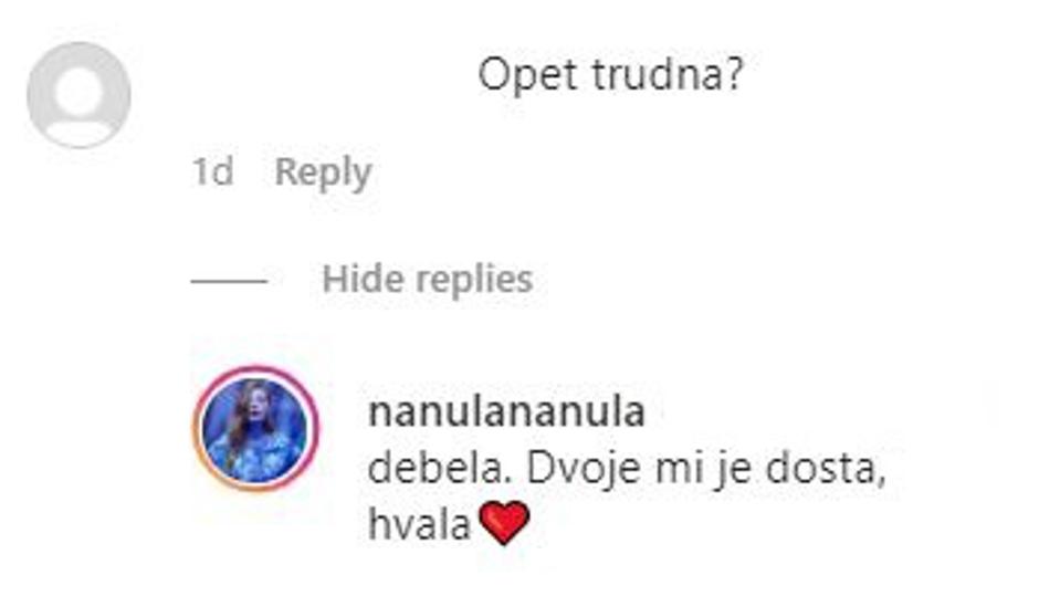 Jednu pratiteljicu, nakon što je Janjić objavila fotku, zanimalo je li hrvatska glumica ponovno trudna.