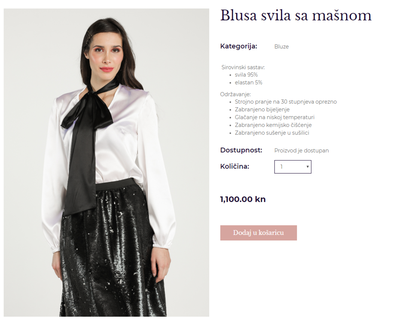 Svilena bluza s mašnom, veličine S, koju je predsjednica nosila dostupna je na webshopu brenda Duchess te stoji 1100 kuna.