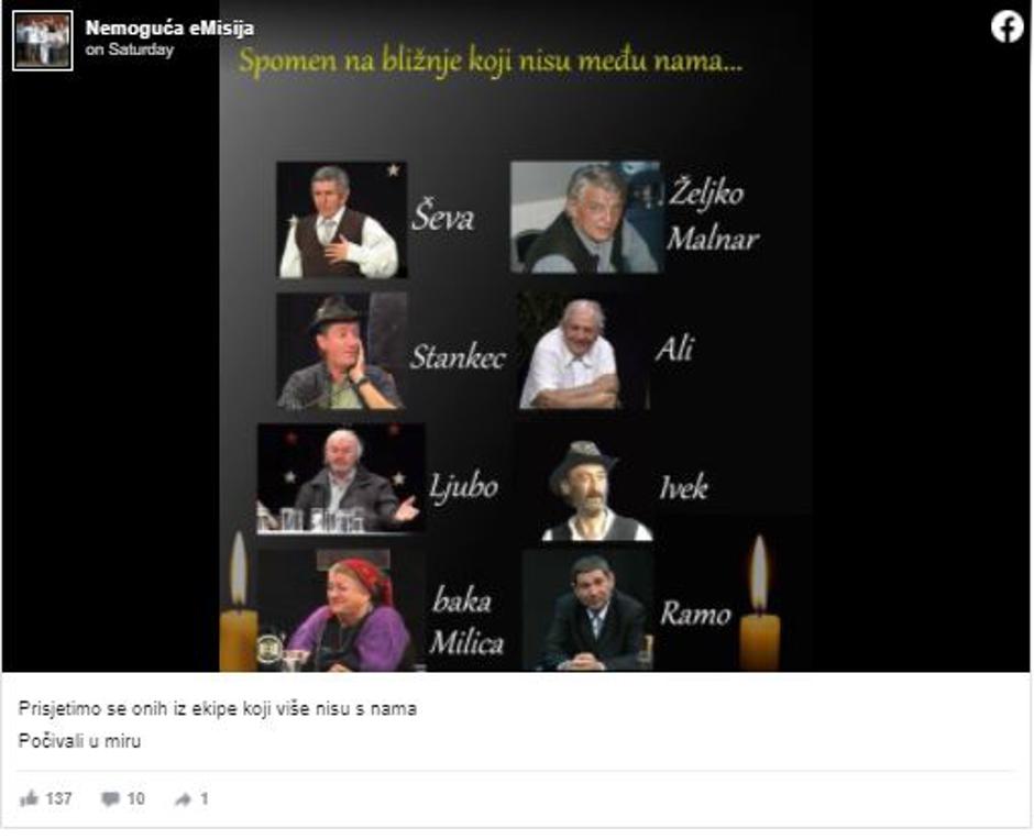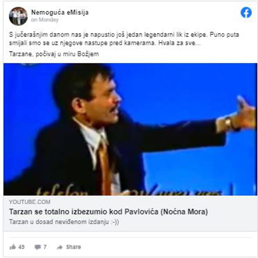 "S jučerašnjim danom nas je napustio još jedan legendarni lik iz ekipe. Mnogo puta smijali smo se uz njegove nastupe pred kamerama. Hvala za sve... Tarzane, počivaj u miru Božjem", stoji u objavi.