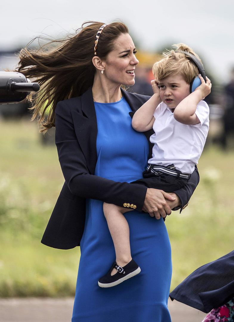 Njegova majka, vojvotkinja od Cambridgea, stavila je djelačku slušalice za zaštitu od buke, nakon čega se princ George smirio.