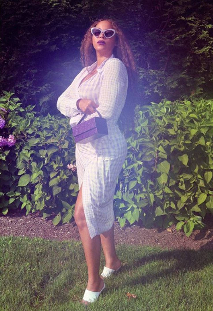 Na fotografijama koje objavljuje na društvenim mrežama na pjevačici se vidi da je dobila nekoliko kilograma, a na zadnjoj je trbuh odlučila sakriti dizajnerskom torbicom. U kariranoj haljini ljubičaste boje Beyonce pozira tako da ne može jasno vidjeti je li riječ o trudničkom trbuščiću ili ipak nečem drugom.