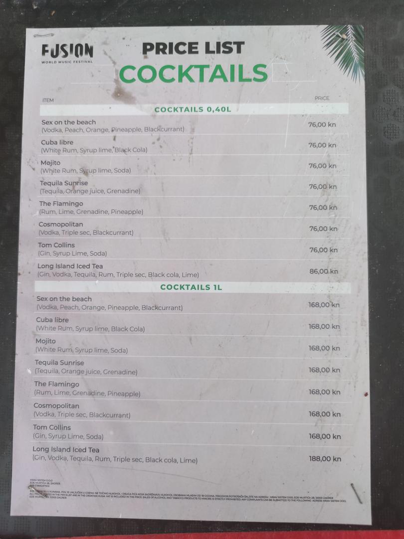 Sve u svemu, jedna posjetiteljica festivala rekla je kako je cjenik korektan, za očekivati na ovakvom događaju, a čak je i rekla kako je cjenik ispod njezinih očekivanja s obzirom da ništa manje ne bi prošla da je sjela u restoran, pojela, popila koktel, a pritom tamo ne bi slušala 8 sjajnih domaćih glazbenika.