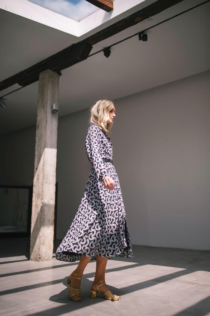 Srijeda je dan za izložbe, predah od poslovnih obaveza i susrete s kolegama i prijateljima, a to znači da je vrijeme za ponešto neformalniji outfit. Mara je za otvorenje izložbe odjenula crno-bijelu haljinu upečatljivog printa idealnu za topla proljetna popodneva. Upotpunila ju je sandalama, a struk je, obzirom da je riječ o haljini ležernog kroja, istaknula crnim kožnim remenom.