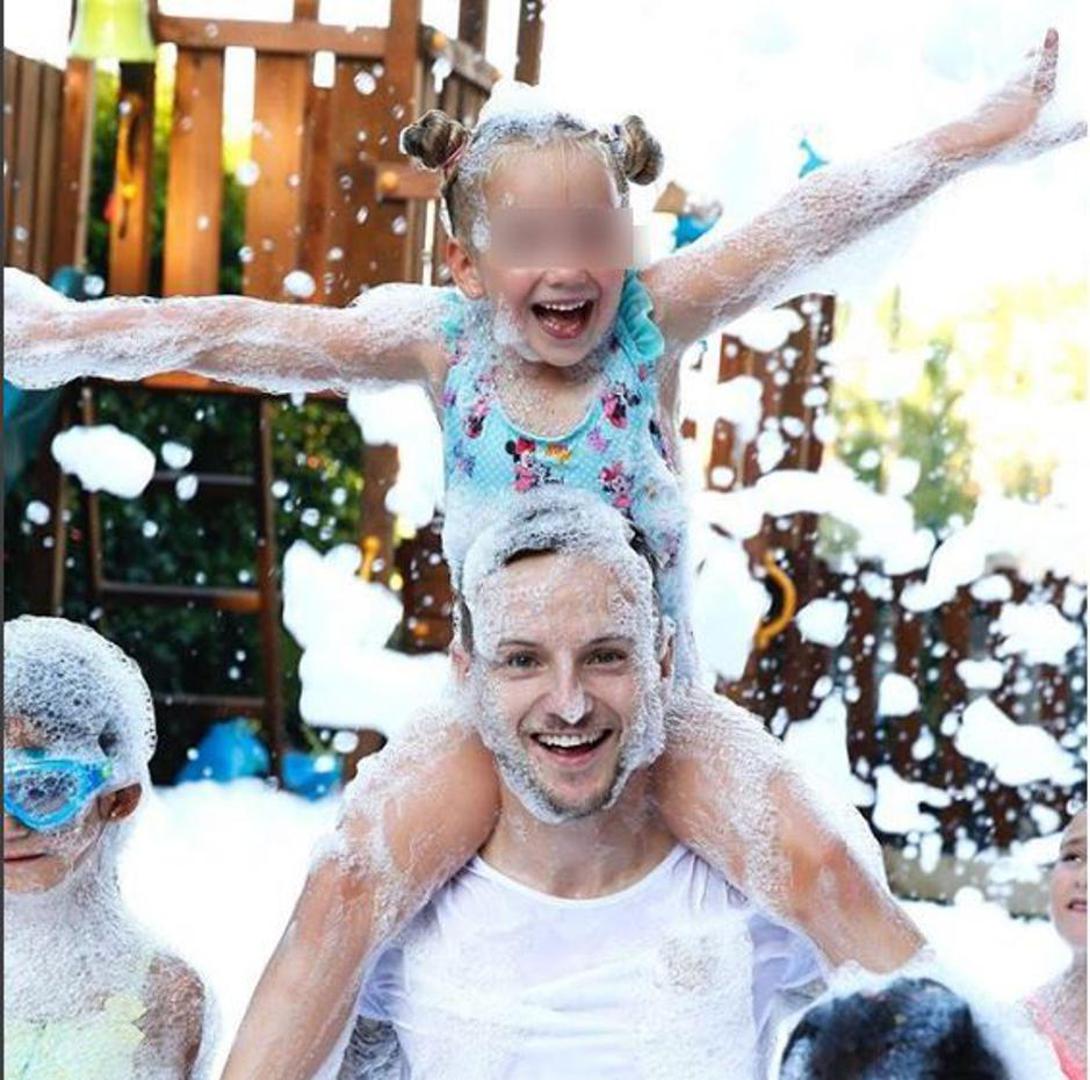 - Uživam kao dijete s mojim curama - napisao je na španjolskom Rakitić pokraj fotografije na kojoj su on i kćeri prekriveni pjenom.