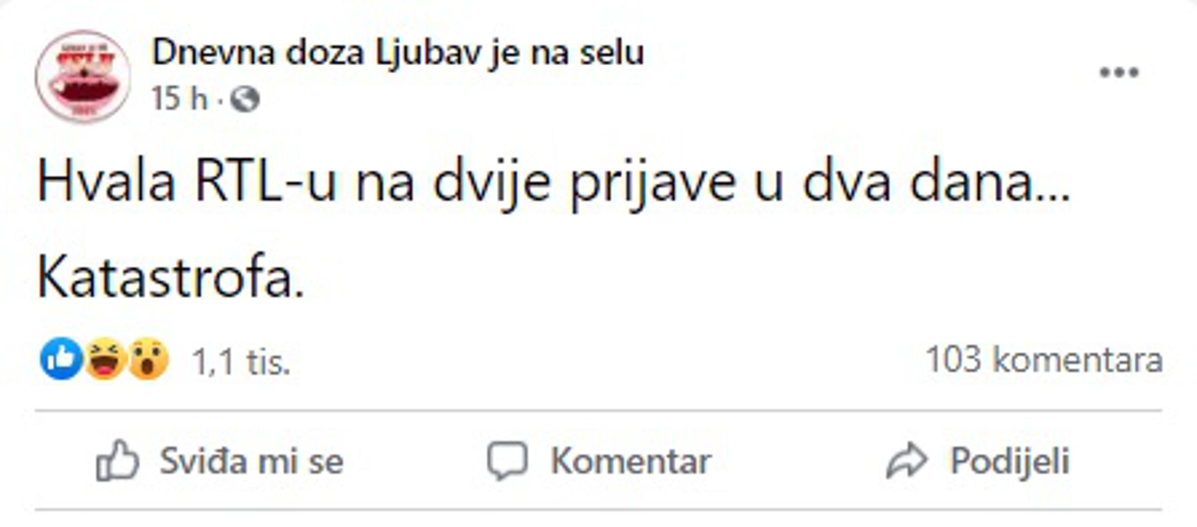 - Hvala RTL-u na dvije prijave u dva dana. Katastrofa, napisali su admini stranice. U komentarima su ih podržali brojni fanovi, a jedan je napisao kako je "najjače što su od njih pokupili ideje, a sada ih blokiraju".