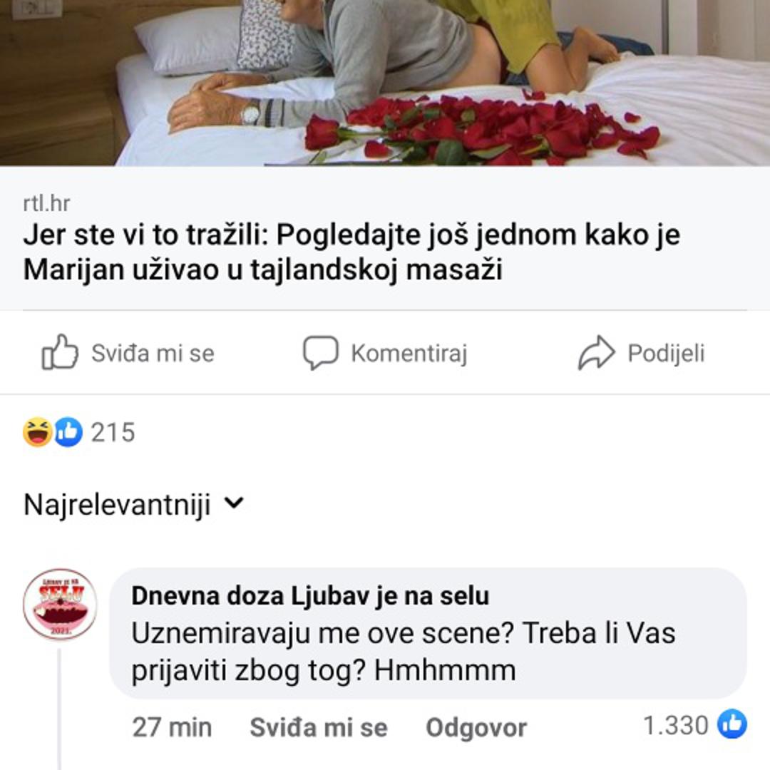 Admini "Dnevne doze..." ostavili su i poruku službenoj stranici kako bi ih i oni mogli prijaviti jer ih uznemirava vijest o Marijanu koji je uživao u tajlandskoj masaži. Ta je poruka, prije nego je nestala, dobila gotovo 1500 lajkova.