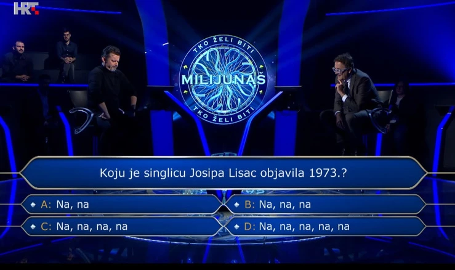 Nakon nje svoje znanje, ali i sreću okušao je i Robert Međurečan iz Zagreba. Nakon što je prešao drugi prag uslijedilo je i jedno glazbeno pitanje na koje Robert nije znao odgovor, ali je pukom srećom pogodio. Riječ je bilo o pitanju za 64 tisuće kuna, a glasilo je 'Koju je singlicu Josipa Lisac objavila 1973?' Ponuđeni odgovori bili su : A: Na, na; B: Na, na, na; C: Na, na, na, na ili D: Na, na, na, na, na.