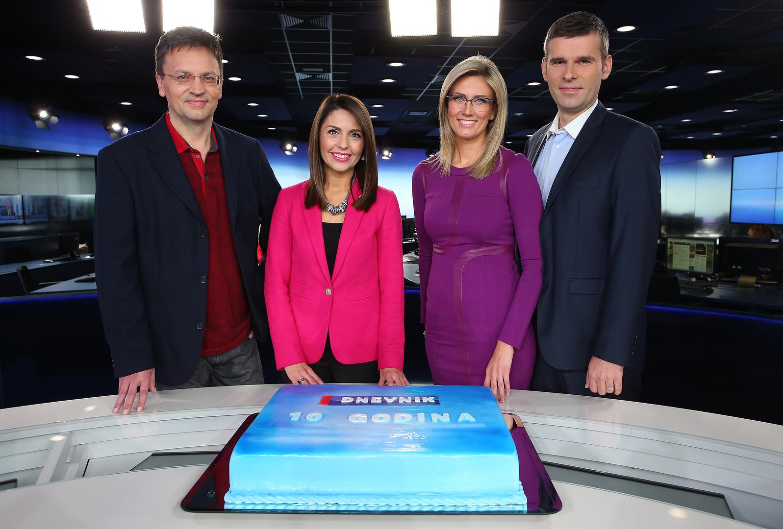 09.10.2015., Zagreb - Proslava obljetnice emitiranja Dnevnika na Novoj TV. Nakon 10 godina emisija Dnevnik emitira se iz novouredjenog studija. Sasa Kopljar, Marija Miholjek, Romina Knezic, Petar Pereza. Photo: Jurica Galoic/PIXSELL