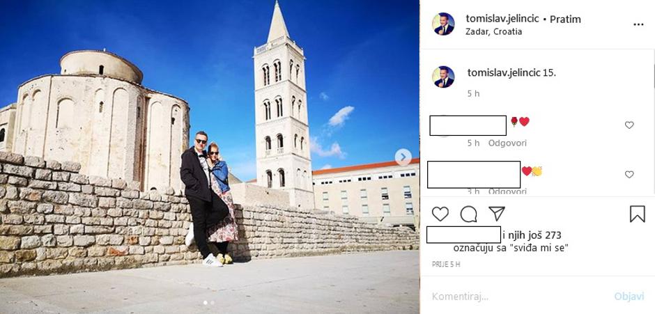 Voditelj informativne emisije ''RTL Danas'' Tomislav Jelinčić ima poseban razlog za slavlje. Sa suprugom Ivanom slavi 15 godina braka, a sretnu vijest pratiteljima je otkrio putem Instagrama. "15", napisao je tek kratko Jelinčić u opisu fotografije na kojoj pozira sa suprugom ispred crkve sv. Donata u Zadru.
