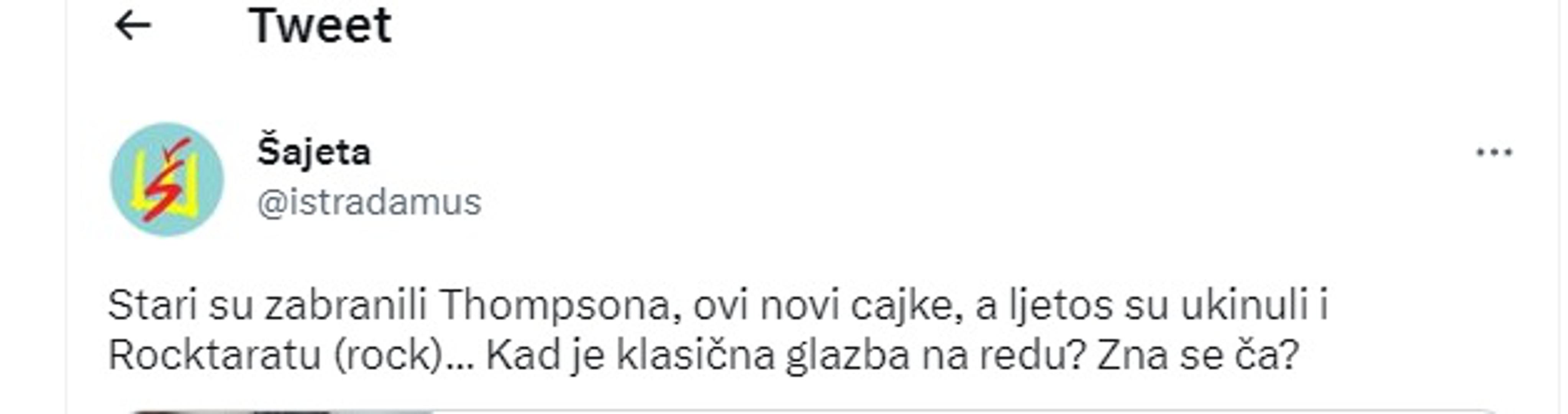 Ne stišavaju se reakcije na zabranu koncerta koji se trebao održati 25. ožujka u Puli i na kojem su trebali nastupiti Duško Kuliš, Dragan Kojić, Ana Bekuta i Zoran Mićanović. Koncert je zabranio pulski gradonačelnik Filip Zoričić, a nakon što su se o svemu oglasili i glavni akteri priče svoj komentar dao je i riječki glazbenik Dražen Turina Šajeta (51). "Stari su zabranili Thompsona, ovi novi cajke, a ljetos su ukinuli i Rocktaratu (rock)… Kad je klasična glazba na redu? Zna se ča", zapitao se Šajeta na Twitteru.