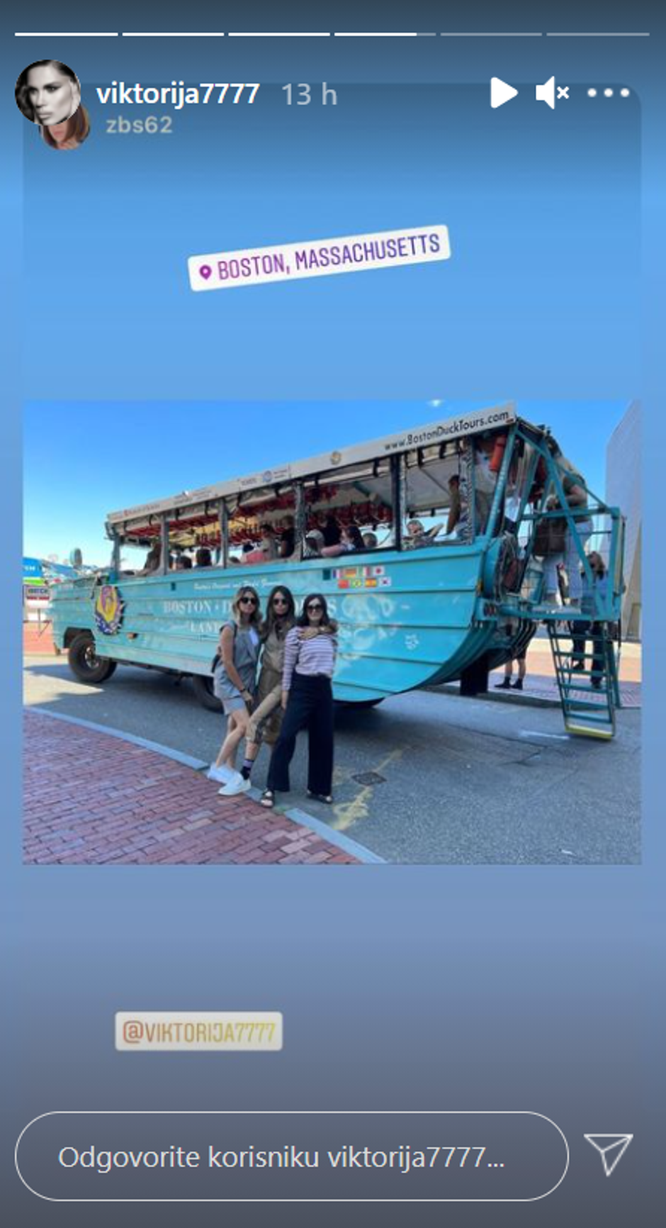 Viktorija se na svojem Instagramu javila iz Bostona odakle je objavila njihovu zajedničku fotku, a na društvenoj mreži otkrila je i da im društvo preko bare čini i samozatajna sestra Petra Graše, Buga, inače Viktorijina bliska prijateljica.