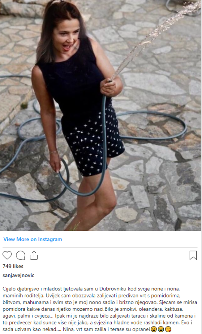 "Cijelo djetinjsvo i mladost ljetovala sam u Dubrovniku kod svoje none i nona, maminih roditelja. Uvijek sam obožavala zalijevati predivan vrt s pomidorima, blitvom, mahunama i svim što je moj nono sadio i brižno njegovao. Sjećam se mirisa pomidora kakve danas rijetko možemo naći. Bilo je smokvi, oleandera, kaktusa, agavi, palmi i cvijeća…, napisala je glumica u objavi.